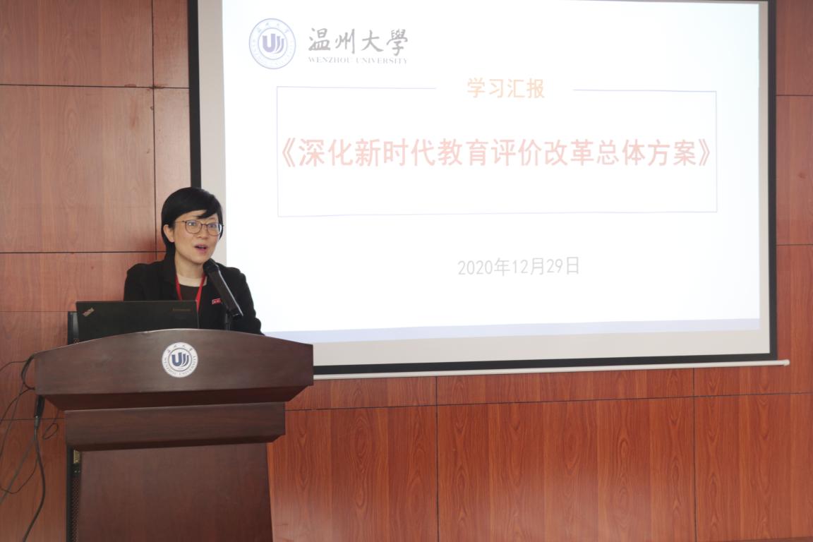 同时就《总体方案》的背景和意义、定位和考虑、改革目标、主要任务、下一步结合国际学院如何贯彻落实等作了详细的解读。
