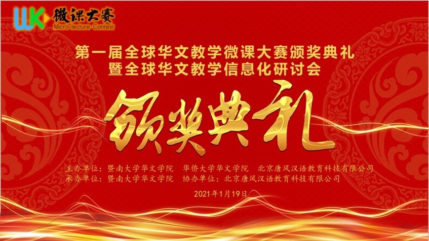 1月19日20:00,由暨南大学华文学院、华侨大学华文学院联合唐风汉语共同发起的第一届全球华文教学微课大赛颁奖典礼暨全球华文教学信息化研讨会在线上隆重举行!捷报即时比分网