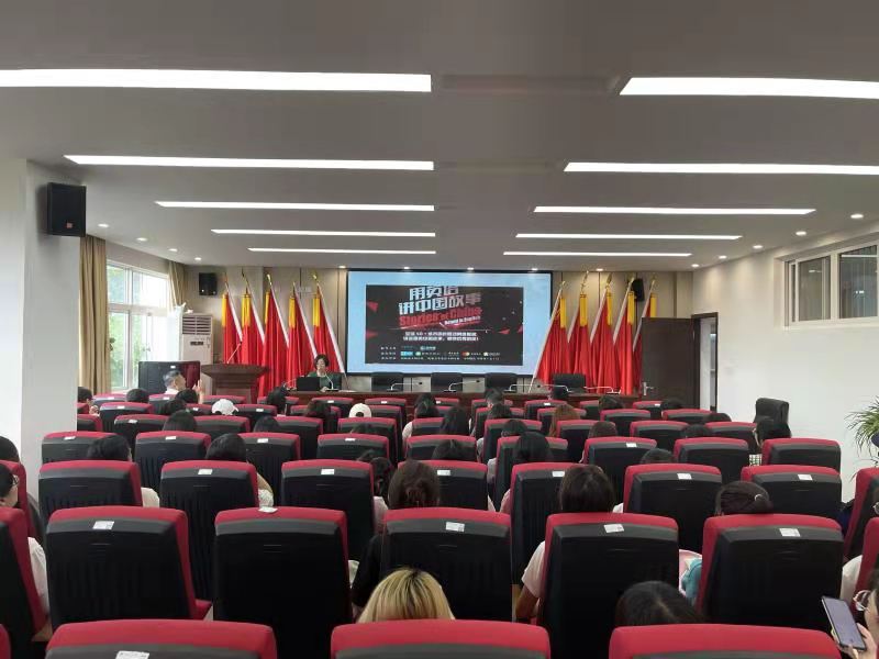 院长叶苗教授发表了题为《用英语讲中国故事——中国当代先进文化外译探析》的演讲,分享了她在翻译相关政治性材料时的心得体会,可总结为五点:一、提高政治敏感性,把握译文正确性;二、吃透原文,理解精神内涵,寻找最贴切的对应词语;三、删繁就简,传达思想内涵;四、用对修辞,弥合文化差异;五、结合语境,辨析近义词。