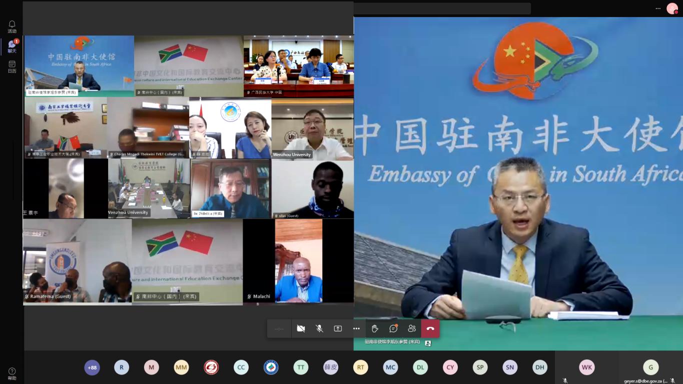启动仪式上,中国驻南非大使馆李旭东参赞发表了致辞。他表示,教育合作是人文交流的重要组成部分,对中非两国友好交流具有重要意义。好的开始是成功的一半,而好的教育资源是此次教育合作顺利开展的重要基石。由于目前全球正面临着新冠病毒的危险,所以此次教育合作项目在开展的过程中也面临着许多不确定性,但他相信有挑战就一定有机遇,解决方法总比困难多。如果双方在合作的过程中遇到任何问题,他都会提供积极的帮助。