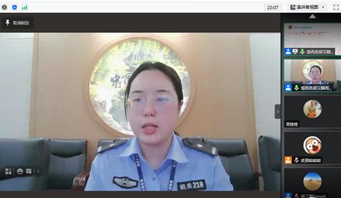 党总支副书记方建晓主持,新生代表及学工办全体辅导员出席。受新冠疫情影响,尚有部分学生在境外无法到来,特采用了线上线下相结合的形式,通过网络直播方式为境外学生开展普法教育。