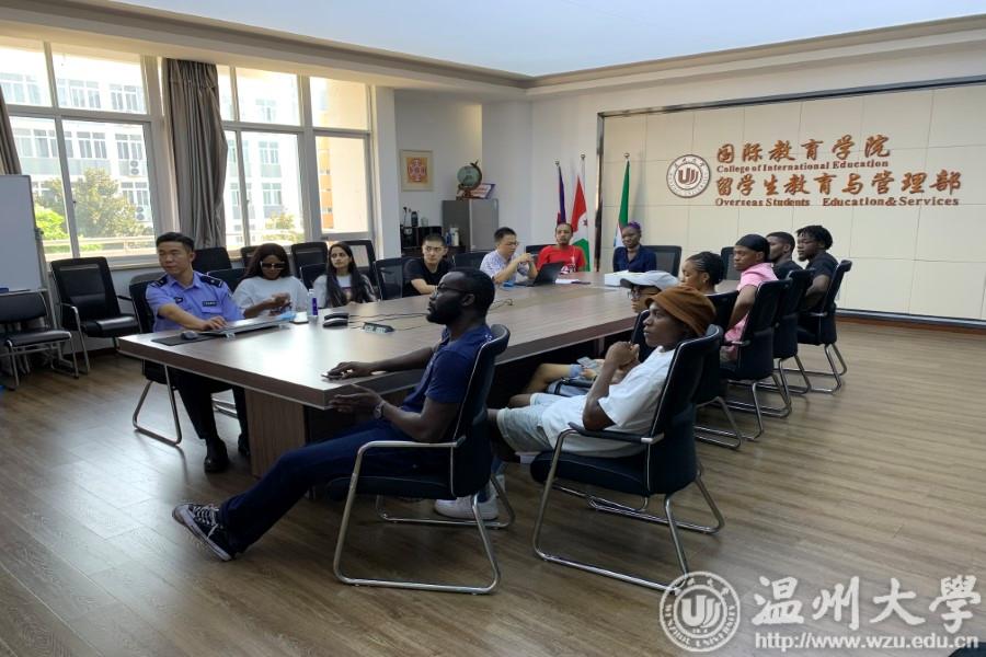 首先,温州市公安局出入境管理大队警官郑惕为国际学生介绍了我国的签证类型、签证政策与申请居留许可的材料,告知国际学生在学习期间必须持有效居留许可,不得从事就业等与签证类型不符的活动,以免受到处罚。随后,瓯海区茶山派出所民警周文涛向国际学生介绍了我国的重要法律法规和国际学生容易遇到的各类诈骗类型,特别强调了我国法律对毒品“零容忍”的政策。为增强学生对校纪校规的理解,学工办辅导员钱江潮重点讲解了学校考勤、住宿、处分等规定,外籍教师Michael分享了他在温大学习、生活和工作的经验,强调每一位国际学生在我国必须遵纪守法,这才是个人发展的基本保障。