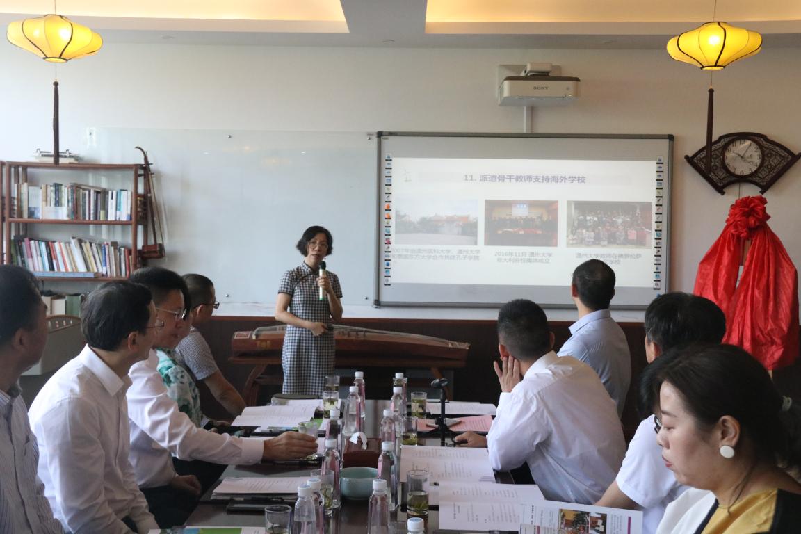 院长叶苗代表双方签署“温州大学与温州市人民政府外事办公室共建温州市外籍人士汉语与中华文化交流学习中心协议书”,温州市人民政府外事办公室主任雷文东和温州大学副校长王舜为“温州市外籍人士汉语与中华文化交流学习中心”共同揭牌。