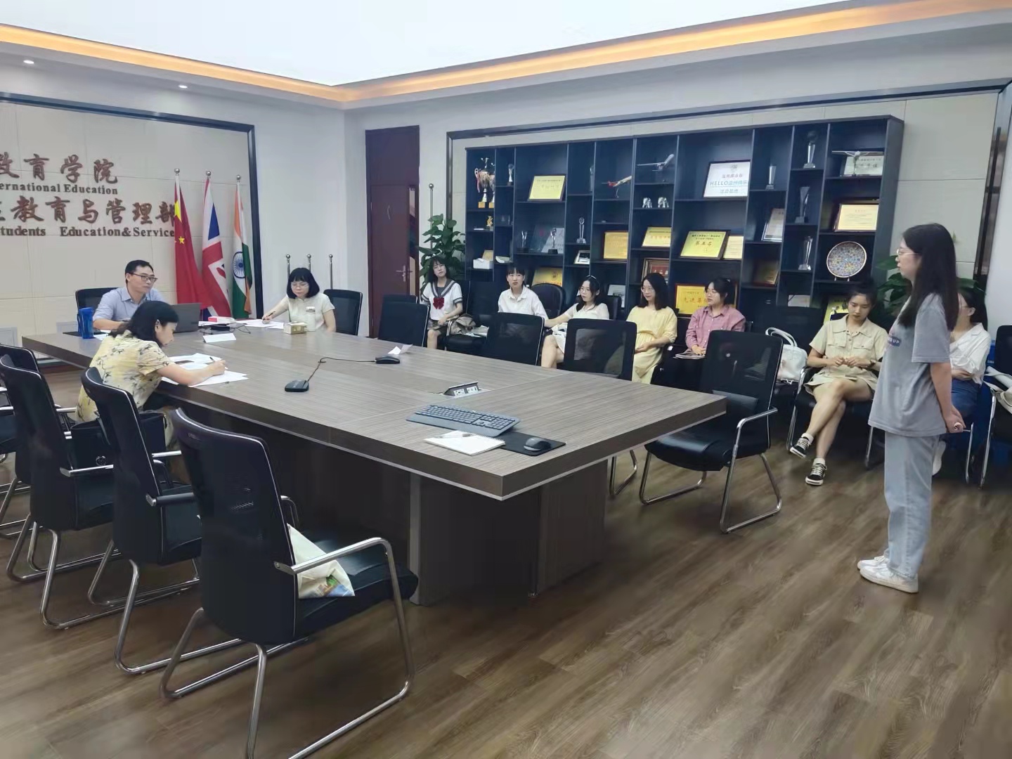 在3-311室成功举行了首届汉语国际教育模拟教学技能竞赛。本次竞赛由汉硕点专业负责人涂海强副教授主持,与郑娟曼教授和周静涵老师共同担任评委。