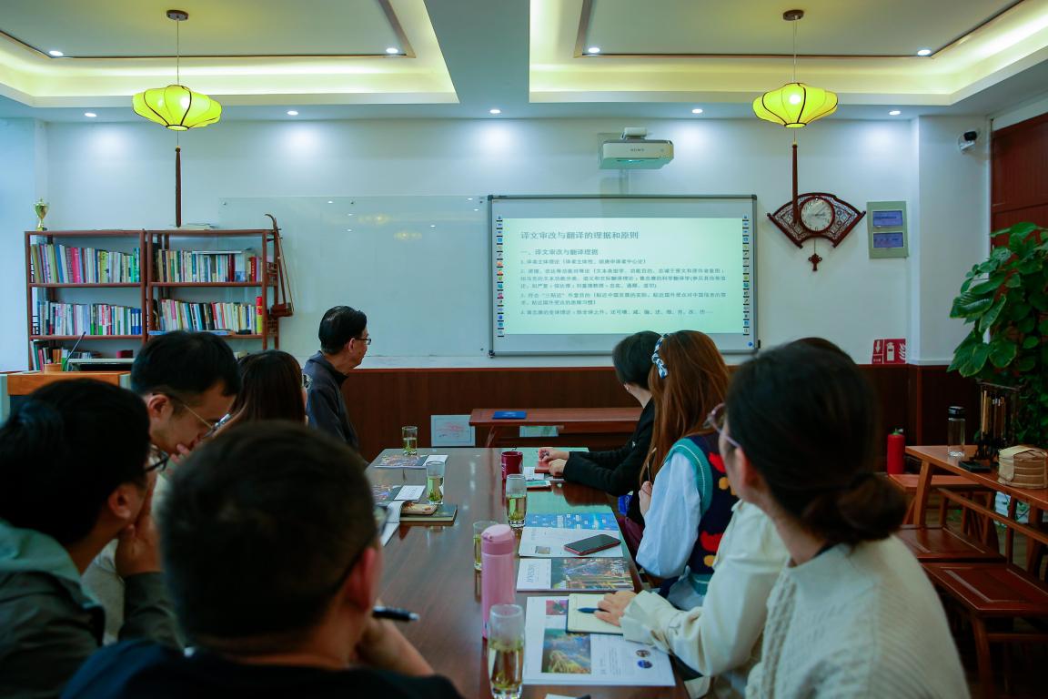 为了加强温州大学翻译与传播研究中心的建设,提高研究中心成员的翻译水平,帮助研究中心成员总结翻译实战经验,促使我中心更好的服务温州当地,我中心特邀翻译专家、IN WENZHOU双语杂志译审(翻译从业人员最高级职称)朱植德,对由我中心成员翻译的IN WENZHOU双语杂志进行讲解、评析。