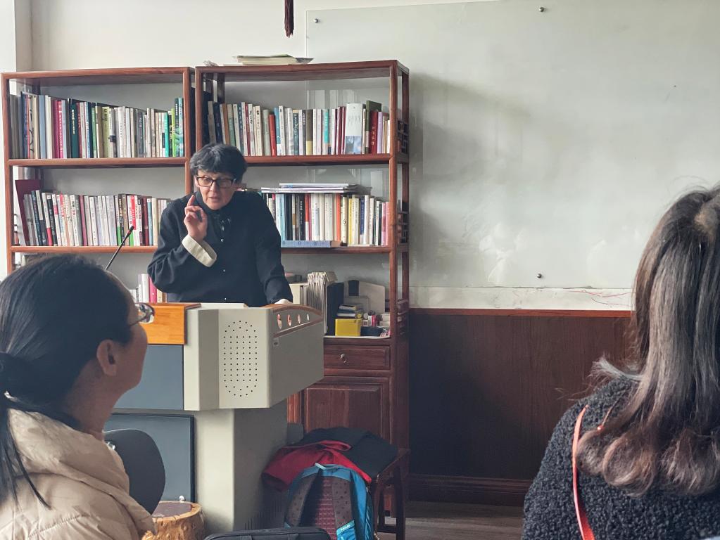 讲座伊始,叶苗院长介绍了唐云教授基本情况和研究方向。唐云教授作为意大利籍汉学家,出于对中国文化艺术的热爱,30多年前就动身来中国深造、研究。她走访中国各地,以及中亚、西亚,了解丝绸之路上各个城市的历史文化、风土人情和经济社会发展状况,出版了多部书籍,被誉为当代女“马可·波罗”。