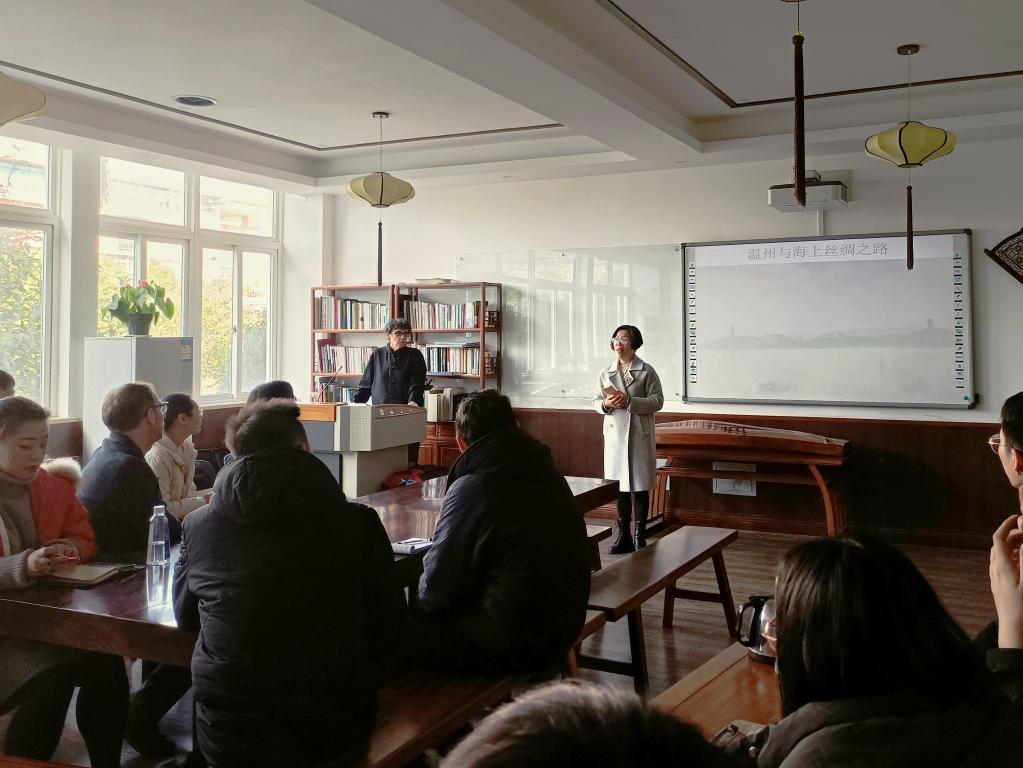 212茶香国际作题为《温州与海上丝绸之路》的学术讲座。本次讲座由学院院长叶苗主持,学院教师、汉硕研究生参加了本次讲座。此外,本次讲座还吸引了多位校外专家学者到场。