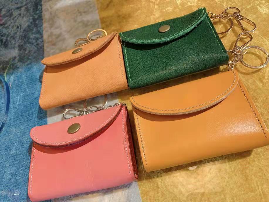 走进优雅的山根小村,沾染愉悦的节日气氛,进入店铺的各位老师迅速地选定了制作的样品和挑选了喜爱的皮料。在学习了皮具的基础制作方法之后,大家纷纷动手开始制作自己的作品,即使是普通的皮料甚至是废弃的边角料,也在一阵阵敲打和缝制中变成了各种实用的生活小物,例如各色的卡包、花瓣形糖果盒、面巾纸收纳盒和造型钥匙串等,可见再平凡的材料加以匠心巧手,亦能散发出无限魅力。