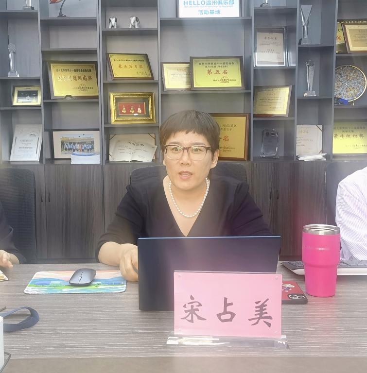 阶段性发展》报告,她指出自2022年以来,学院在教学成果、科研成果、学生工作、招生工作、院务发展等方面均取得了可喜成就。教学成果方面,教学竞赛、课程立项、学科竞赛多点开花,成绩喜人;科研方面,学院教师踊跃申报,持续努力;学生工作方面,Jennifer的《温州有你》发布、国际学生电视台、留学生疫情防控志愿者队伍等事迹影响深远;招生工作方面,2022年汉语国际教育硕士研究生招生复试圆满结束,留学生招生多措并举,成效明显;院务发展方面,捷报比分新闻