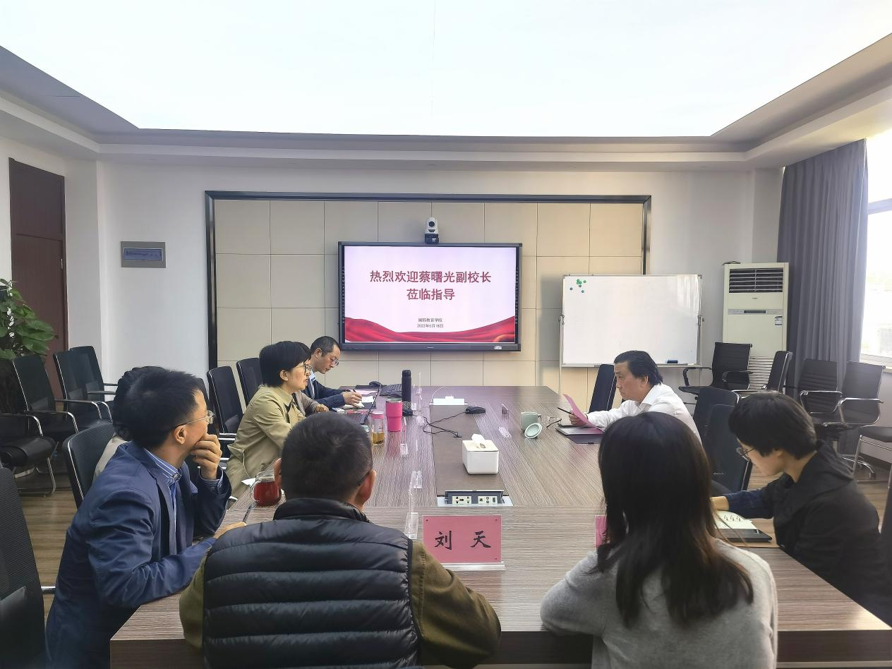 蔡曙光副校长认真听取学院的各项工作汇报与建议,就如何优化我校来华留学机制体制,促进学院(留学部)的发展提出以下工作要求:第一,全力做好来华留学生高等教育质量认证工作。找出差距,对标建设,确保顺利通过认证;第二,制定出台具有绝对吸引力的奖学金制度与突发应急资金使用办法等,使之成为我校留学生招生中的亮点与优势;第三,针对目前的发展问题,充分调研和论证,形成问题和对策清单,专题向学校汇报,进一步理顺管理机制和激发办学活力,推动学院高质量发展。