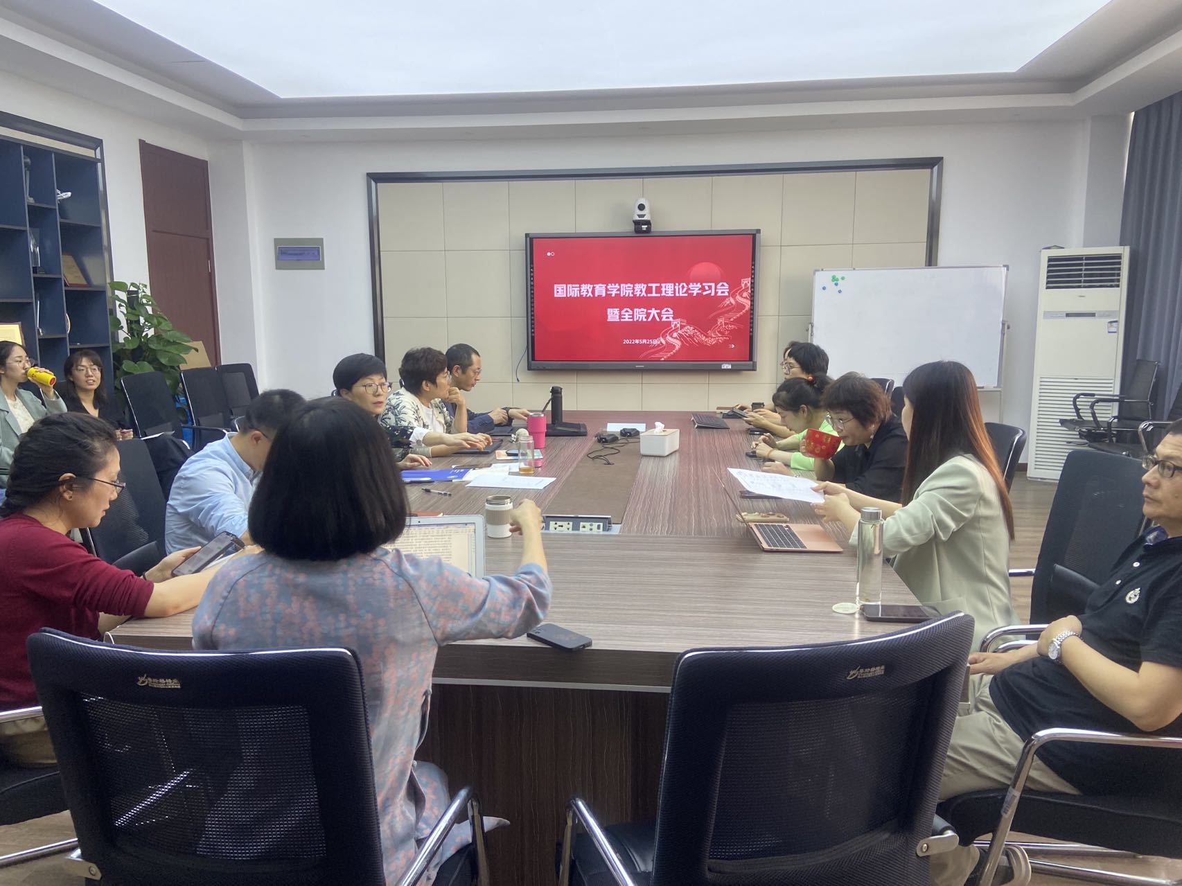 全院教师在国际楼311会议室召开教工理论学习会议,院长宋占美主持。