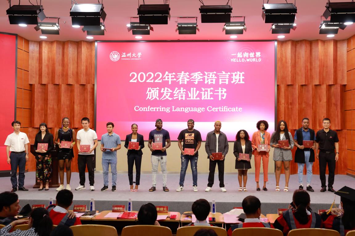 院长宋占美、党总支书记林爱菊分别宣读优秀国际毕业生、校友联络员名单,相关部门负责人为留学生颁发荣誉证书,给语言班结业生颁发结业证书。