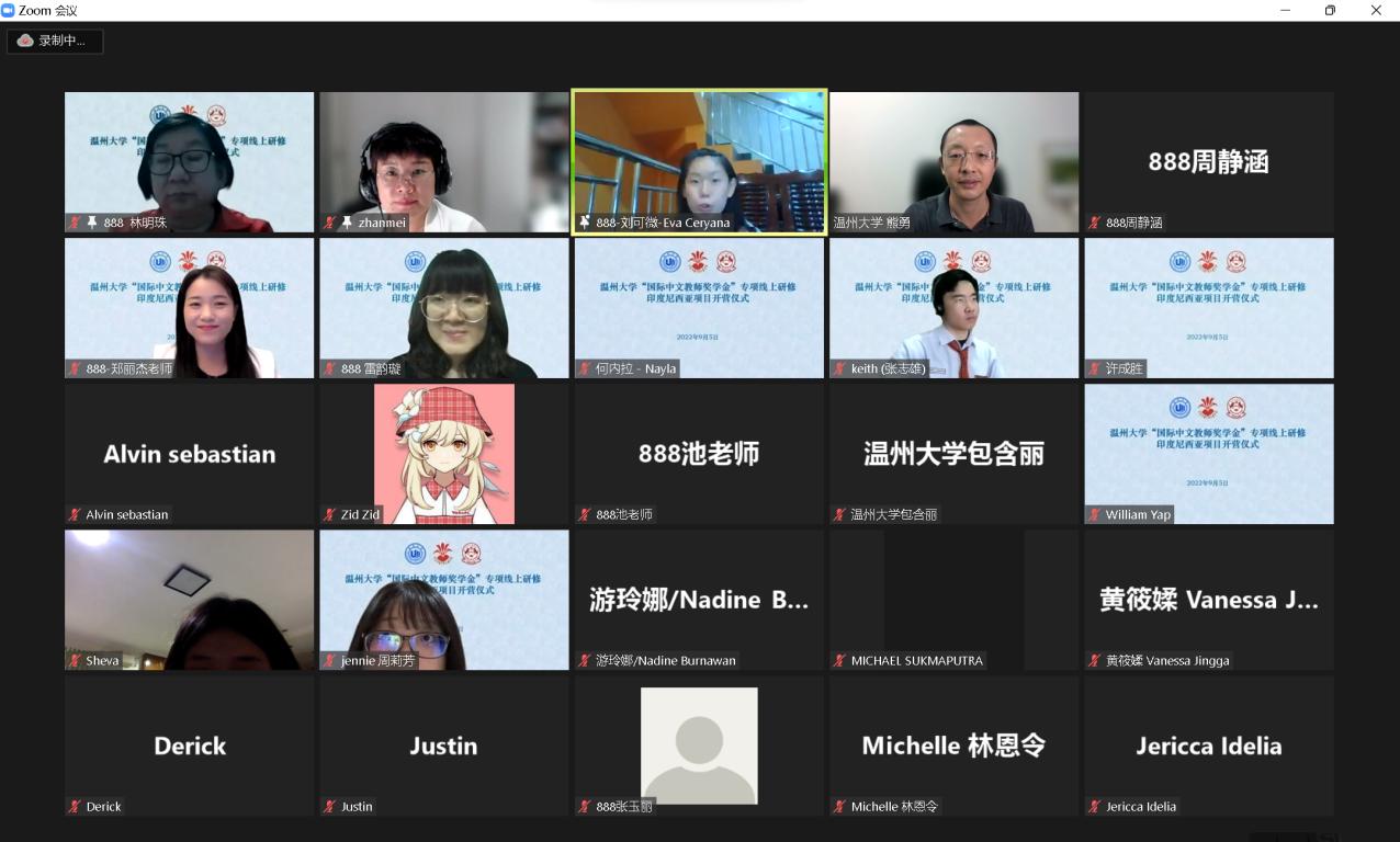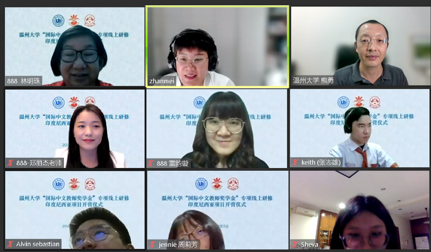 2022年9月5日,温州大学“国际中文教师奖学金”专项线上研修印度尼西亚项目开营仪式在线上隆重举行。印尼华裔中华乐趣学苑主席林明珠、副主席郑丽杰、印尼棉兰南洋之晖学校校长雷韵璇与汉语研修项目全体学员70名印尼中学生参加,我校捷报即时比分网