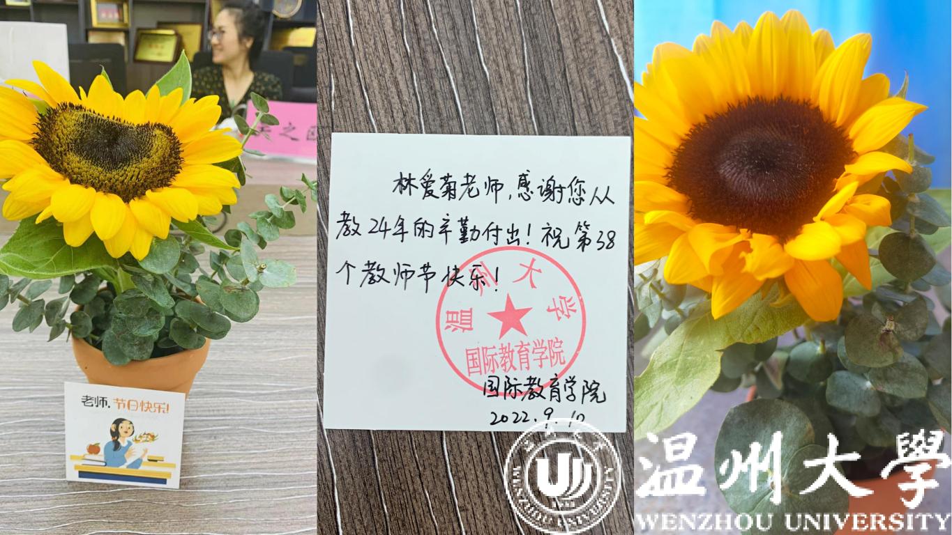 学院工会为每位教职工手写贺卡和鲜花,对各位教职工致以节日的问候并对辛勤付出表示最衷心的感谢。
