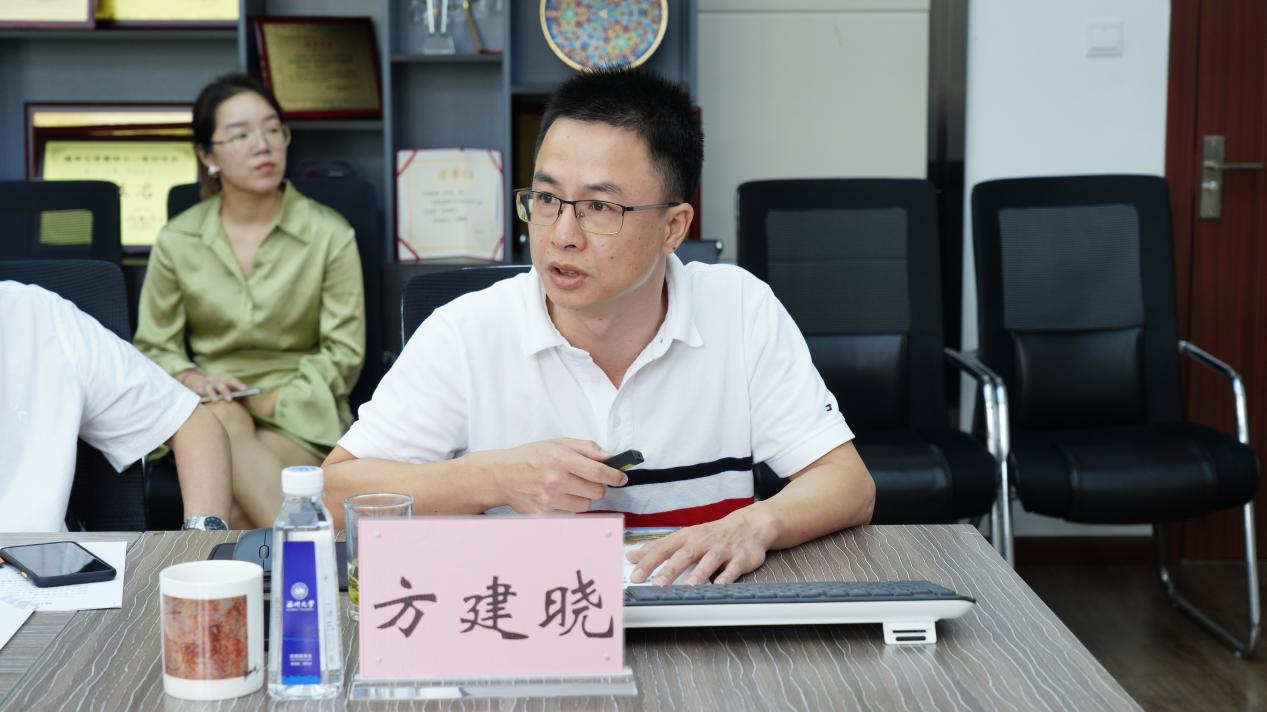 蔡曙光副校长对杜健一行来我校开展调研指导工作表示热烈欢迎及衷心感谢。蔡校长从学校基本情况、发展历史、办学优势、高校影响力、发展目标、丰硕成果介绍了学校的建设与发展情况,蔡校长表示我们将聚焦“更讲政治、更高水平、更具特色、更有作为”的发展主线,奋力将温州大学建设成高水平教学研究型大学。