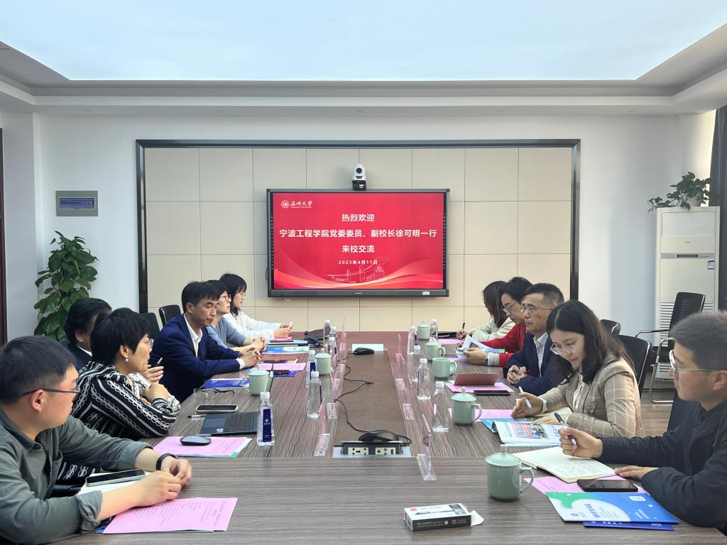 4月11日下午,宁波工程学院副校长徐可明一行来我校交流座谈,副校长蔡曙光、国际交流与合作处处长黄文浩、捷报即时比分网