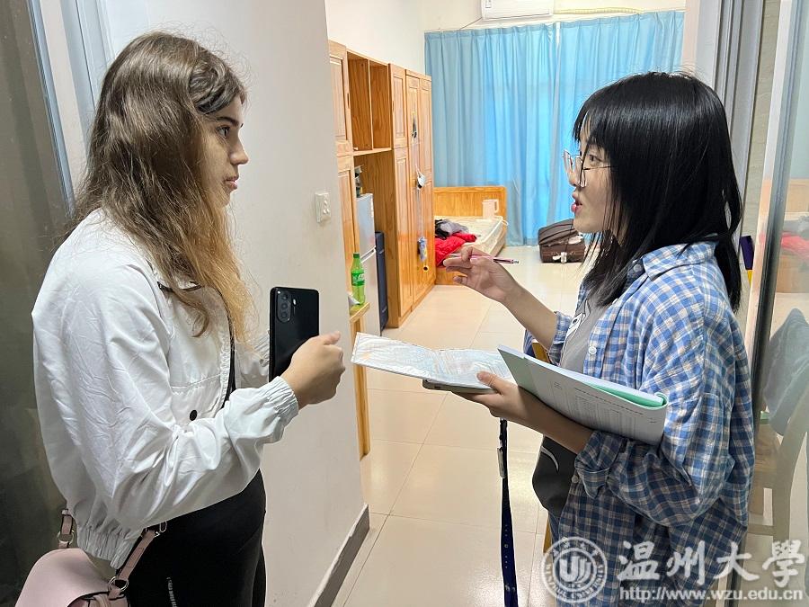 为加强对来华留学生的管理和教育而采取的一项常态化措施。通过这样的活动,既能及时发现和解决留学生在寝室方面存在的问题,又能增进与留学生之间的沟通和交流,提高他们对学校和学院的认同感和归属感。我们相信,在全体国际师生的共同努力下,我们一定能够创建出一个安全、文明、温馨、和谐的寝室环境,为学校90周年校庆献上一份厚礼。
