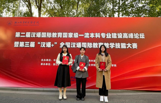 我校汉硕生导师涂海强副教授带领了3名汉语国际教育专业硕士生李之瑶、刘春彤和张丽娜参加了本次比赛。同学们在比赛中沉着应战,在说课、教学和问答环节均有着出色的发挥,展现出了坚实的专业知识储备与优异的专业教学技能,并最终荣获二等奖(李之瑶、刘春彤)和三等奖(张丽娜)的好成绩,导师涂海强获优秀指导教师荣誉称号。