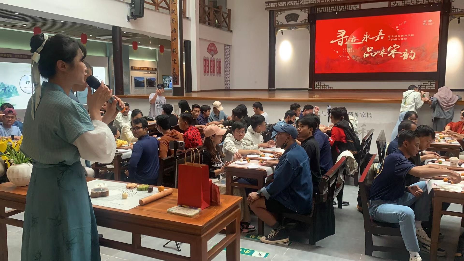 接着,学子们亲自动手制作云礼宋韵糕点。他们跟随糕点师傅学习传统技艺,揉面、和馅、定型、烘焙,看着自己动手制作出的精美糕点,学子们脸上露出了满足和喜悦的笑容。他们纷纷表示,制作糕点的过程非常有趣,不仅学到了技艺,更感受到了中华传统文化的魅力。