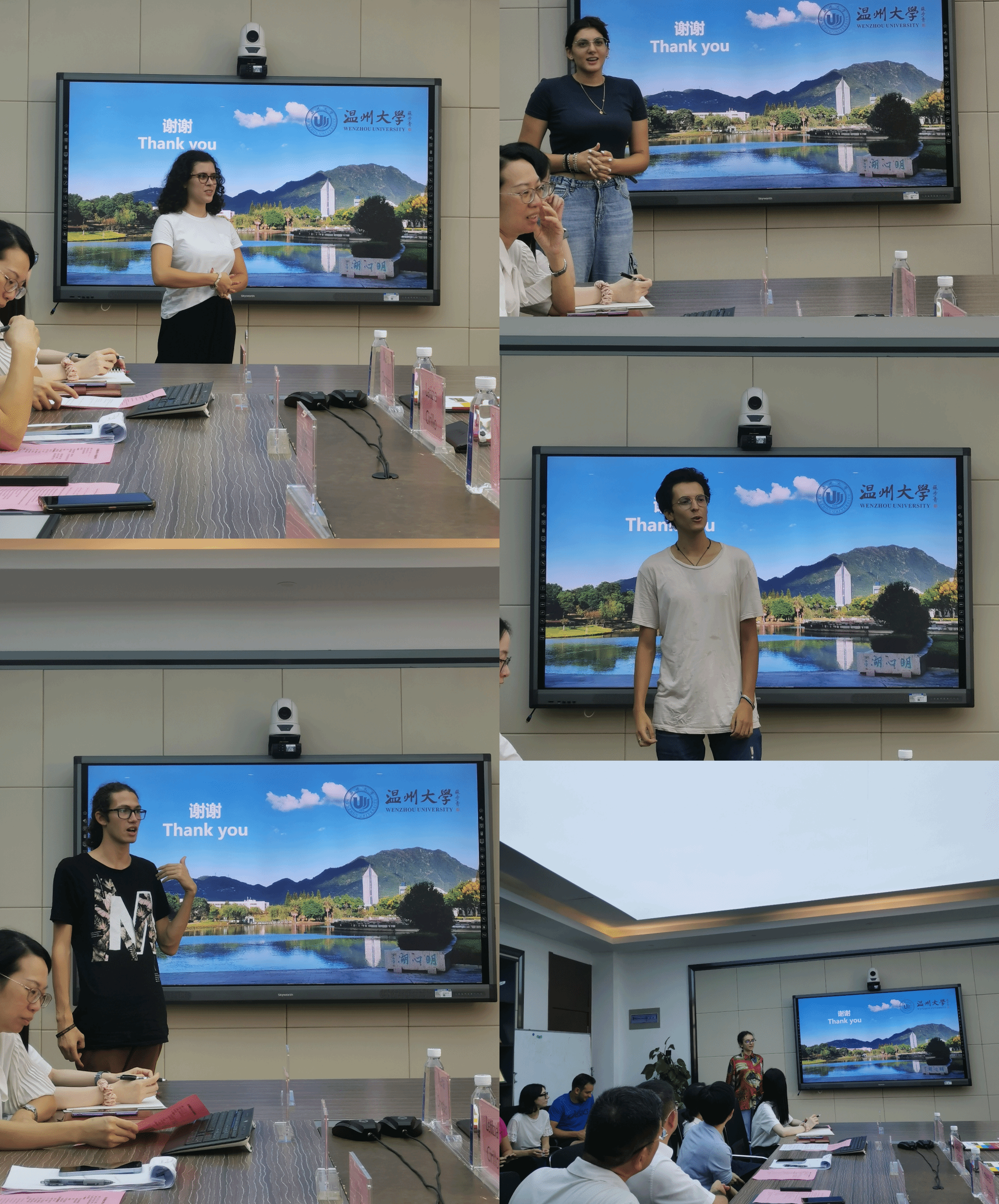 在师生交流环节,学生分享了自己来温大后的学习经历。他们纷纷表示,自从来到温州大学后,不仅深深喜爱上了这里浓厚的学习氛围和优质的学习环境,还被温州丰富多彩的美食文化和旖旎的自然风光深深吸引,对中国博大精深的传统文化更是产生了浓厚的兴趣与探索欲。在这里,他们不仅收获了知识,还亲身体验到了中华文化的独特魅力。虽然初到温州,他们也不免想念家乡,但是同学和老师的热情和友善使他们慢慢的安定下来。他们希望在接下来的学习时间里能够学好中文,更加深入的了解中国文化。