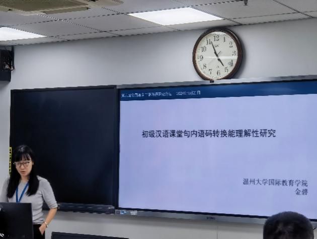 金碧老师在平行论坛作了题为《初级汉语课堂句内语码转换可理解性初探》的报告,关注教师话语和汉语作为第二语言习得的关系。西安交通大学外国语学院庞加光教授作了中肯的点评。