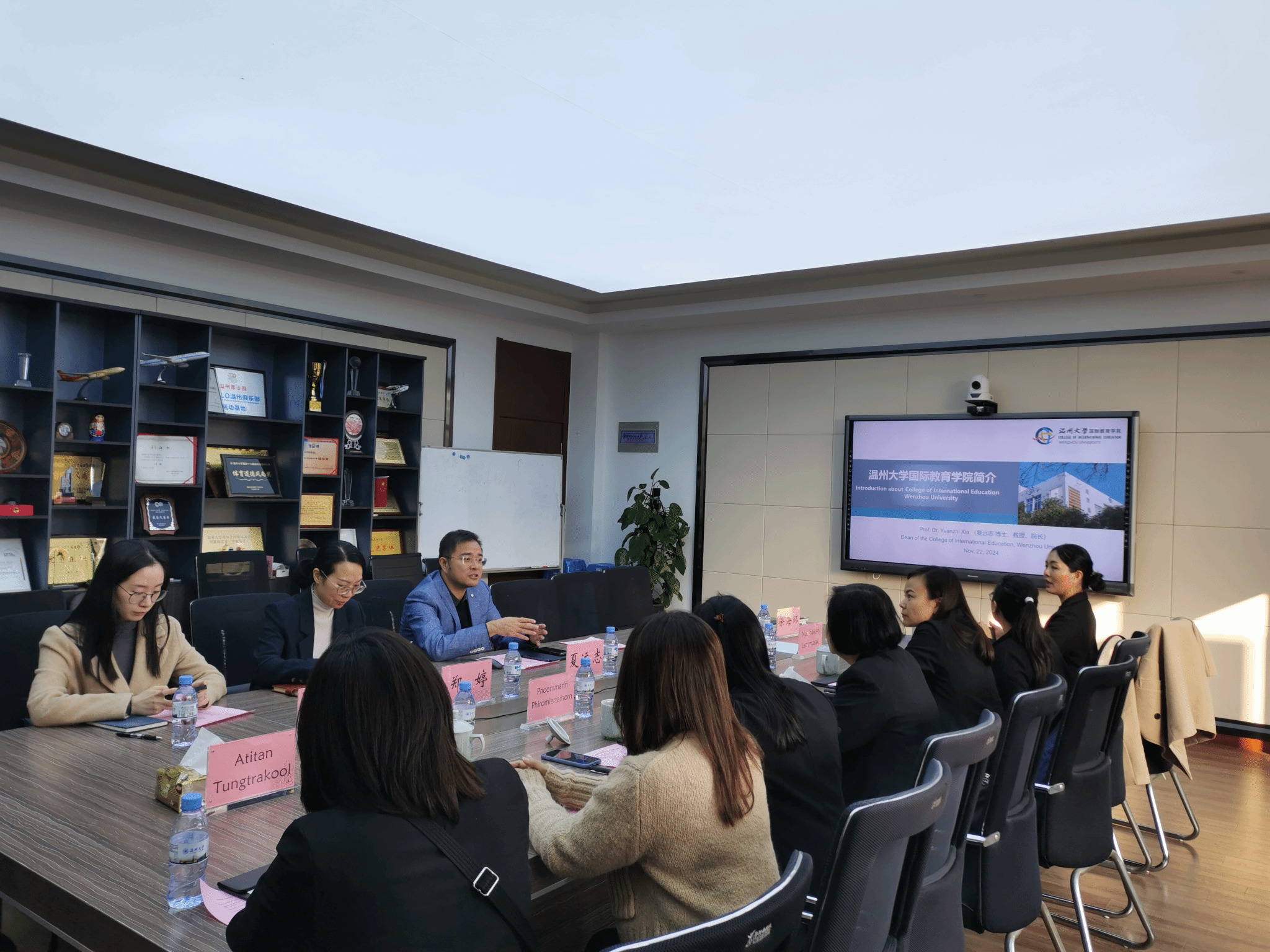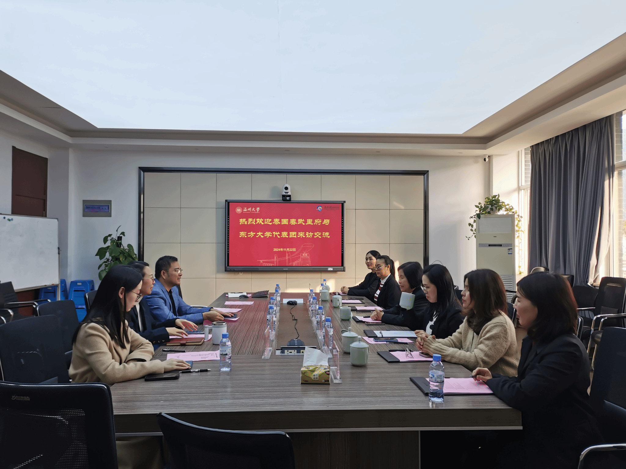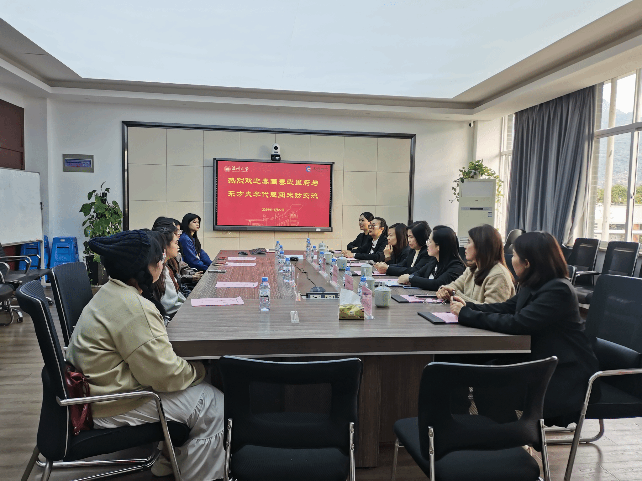 会谈结束后,泰国东方大学副校长一行还与参与该项目的泰国学生进行了座谈,了解他们在温大学习的情况。学生们认为:两校的联合培养项目他们不仅为他们提供了专业的语言学习的途径,更能在中国实地感受到了中国文化,促进了对中国文化的理解与认识。