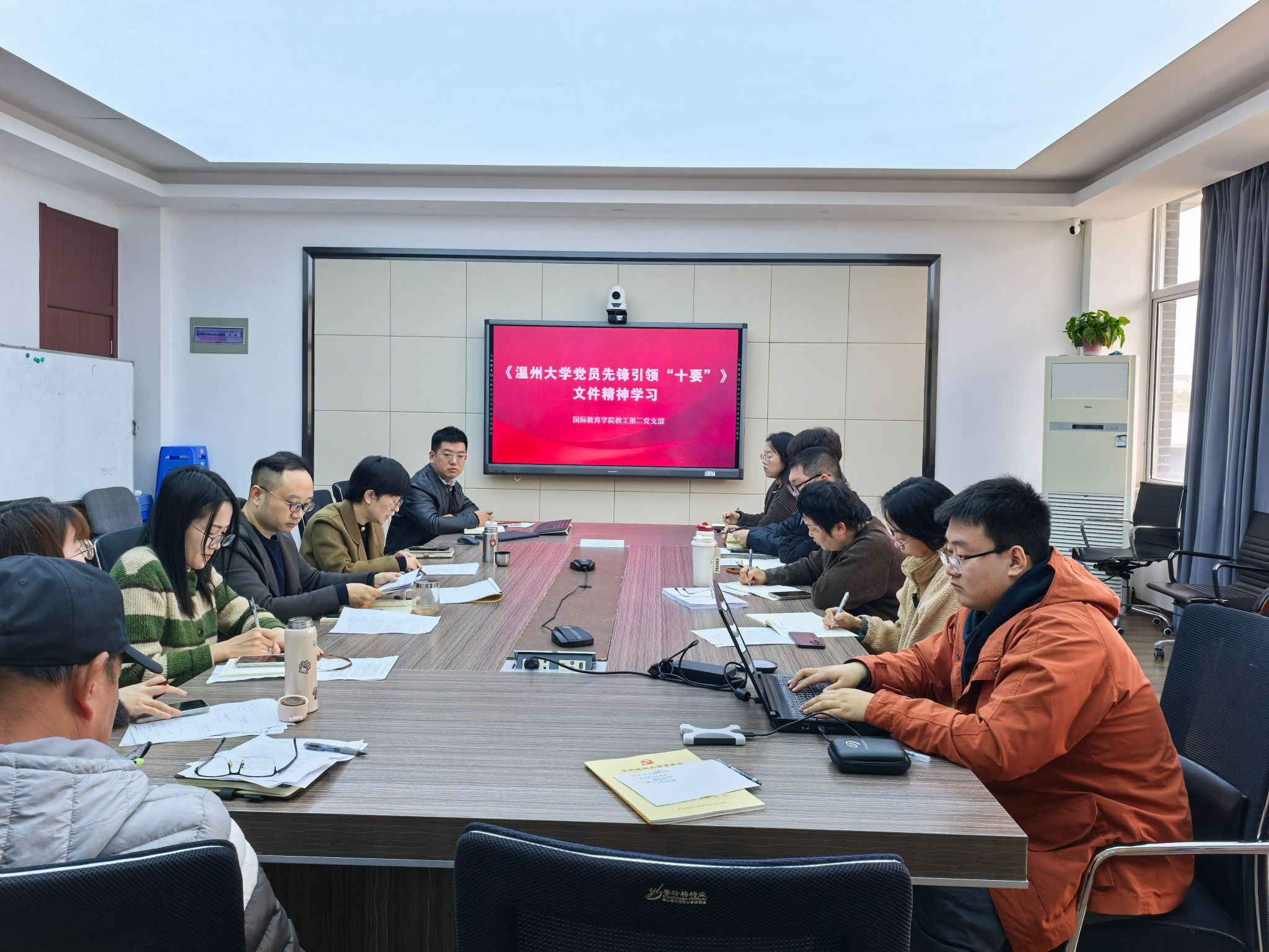 院党总支书记林爱菊领学了《温州大学党员先锋引领“十要”》文件精神。林书记首先强调了教师党员“五个自觉”的核心价值。她指出,教师党员应自觉做理论武装的先锋,不断学习党的理论知识,提高自身政治素养;自觉做守土尽责的先锋,坚守教育阵地,为培养优秀人才贡献力量;自觉做爱岗敬业的先锋,以高度的责任心和使命感,投身教育事业;自觉做“三全育人”的先锋,即全员育人、全程育人、全方位育人,为学生的全面发展保驾护航;自觉做安全守护的先锋,确保校园安全稳定,为师生创造一个和谐的学习生活环境。