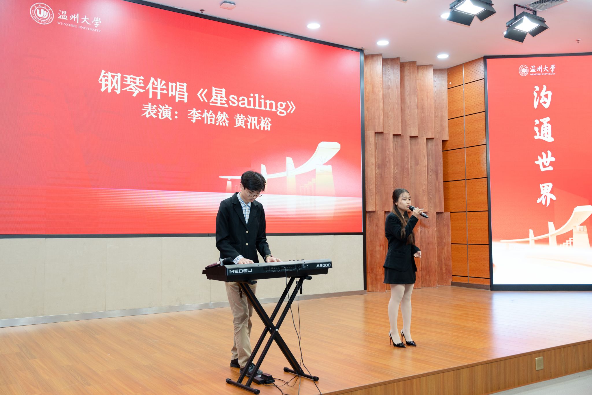 文化展演环节,印尼舞蹈《SAJOJO》、钢琴弹唱《星sailing》、歌曲演唱《最初的梦想》、诗歌朗诵《读中国》《鱼在波涛下微笑》、诗词讲解《登鹳雀楼》、中文宣讲《我与第二故乡温州的故事》...来自印度尼西亚、喀麦隆、越南、意大利、津巴布韦、尼日利亚等国的留学生们,用多元的艺术形式和流利的中文表达,展现了他们在中文学习道路上的丰硕成果,搭建起一座跨越国界的文化桥梁。