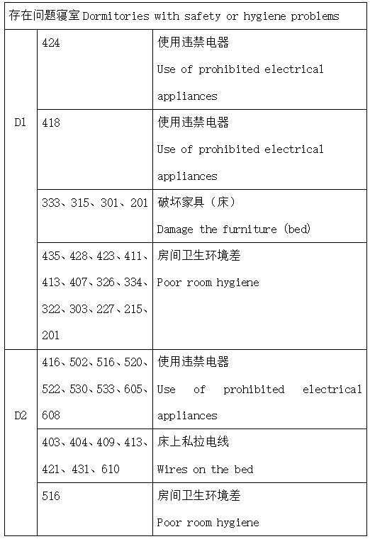学工办对国际学生公寓进行了安全卫生大检查。
