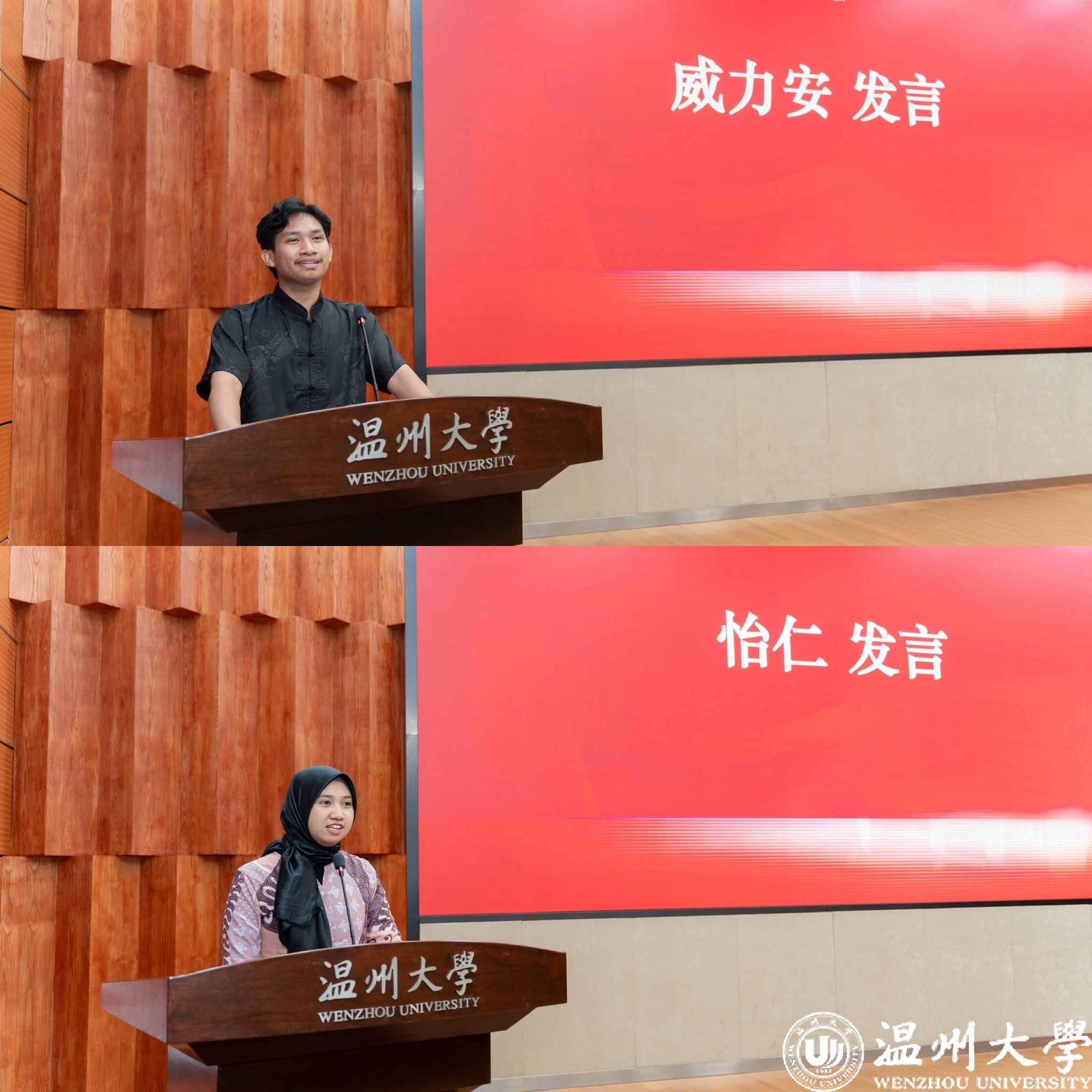 典礼伊始,温州大学副校长王舜发表致辞。他首先向圆满完成学业的学员们表示祝贺,并高度肯定了青山班作为中印尼文化交流桥梁的重要意义。王舜勉励学员做“语言与文化的传播者”“创新与合作的践行者”“友谊与发展的见证者”,希望他们带着温大精神,在未来的职业道路上绽放光彩。