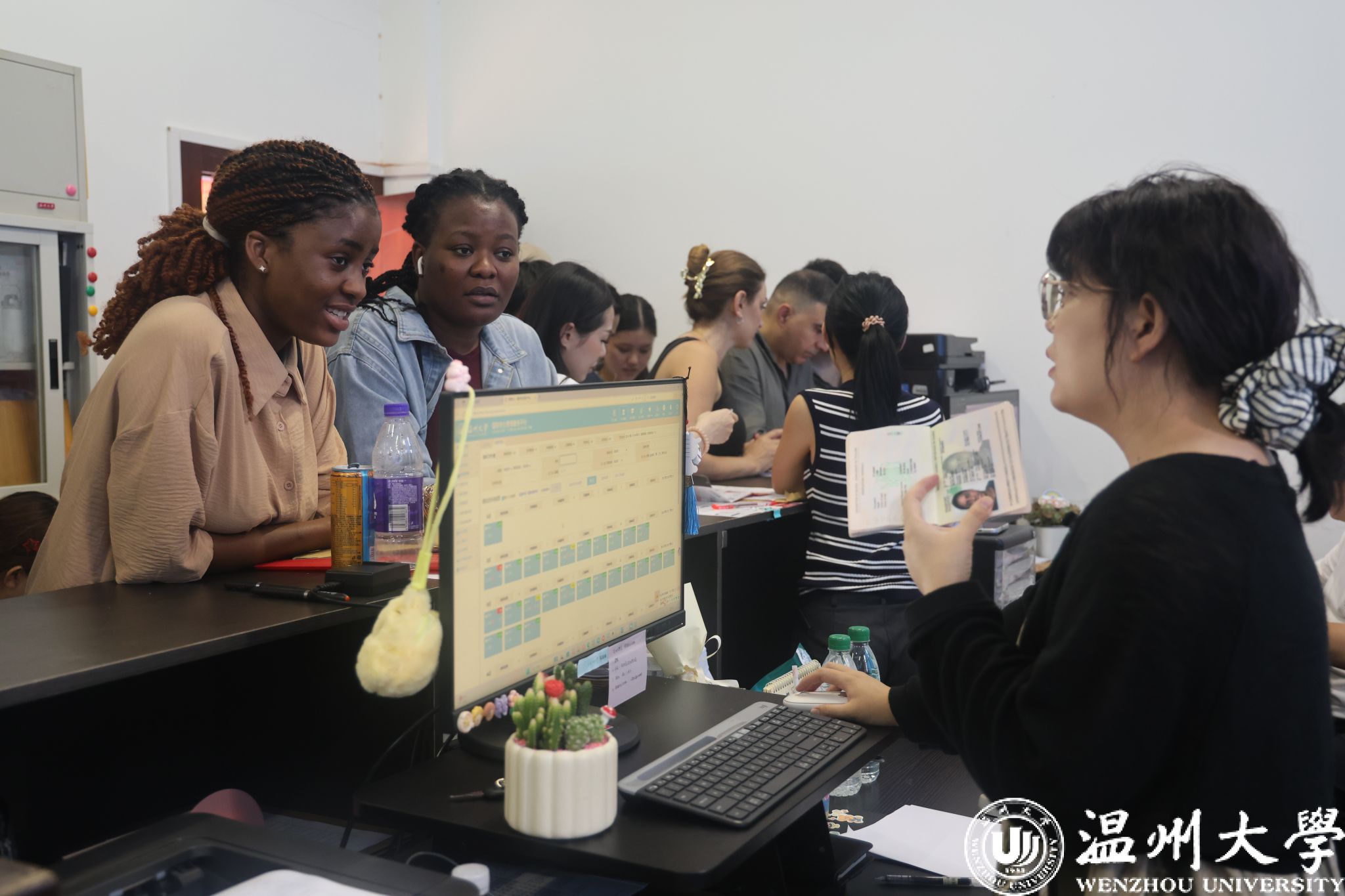 为帮助新生顺利开启校园新生活,学院提前部署、周密筹备,推出贯穿多个环节的“一站式”迎新服务。报到注册、住宿办理、签证咨询、居留许可登记、保险购买和学籍注册等流程均可在同一站点内完成,极大简化了入学手续。各工作组默契配合、衔接流畅,用实际行动诠释“以生为本”的服务理念,让国际新生第一时间感受到“温大效率”和“温大温度”。