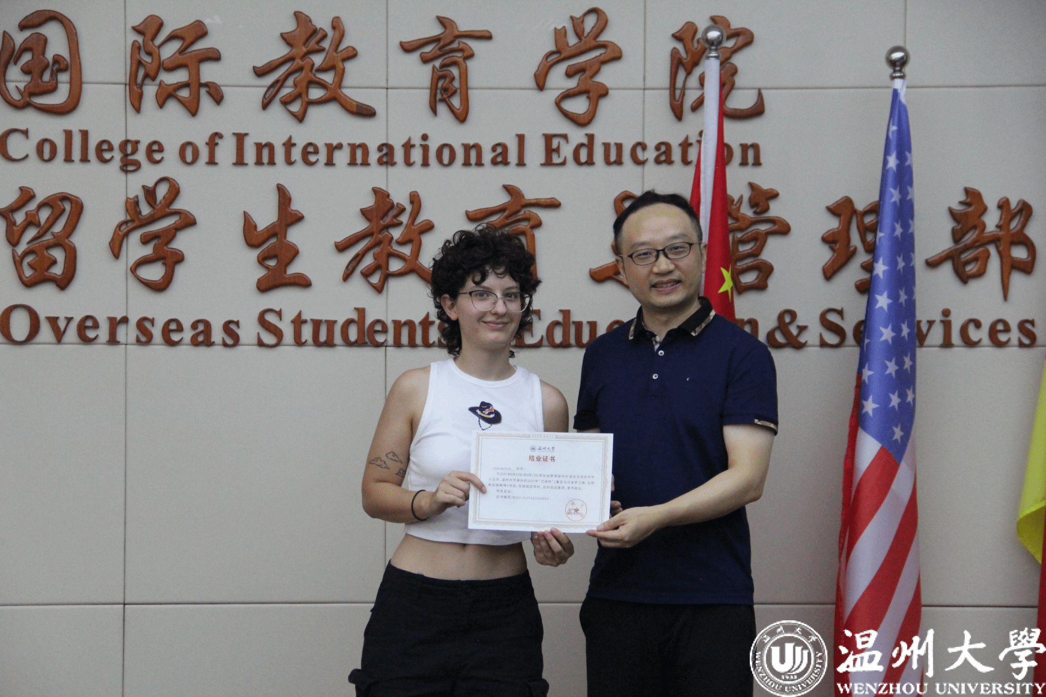 “这个项目不仅让我提前熟悉了未来两年生活的城市,更让我透过温州这扇‘窗口’,触摸到了中国文化的深厚底蕴——汉语不再是课本上的字符,而是能对话、能共情的‘文化纽带’。”来自锡耶纳大学的池永欣(Tommaso Pizzicori)的发言,道出了众多同学的心声。来自米兰圣心大学的索菲亚(Sofia Jarach)动情地说:“‘汉语桥’不只是一座语言学习的桥,更是一座连接中意青年心灵的桥。在这里,我不仅亲身体验了发绣、茶道这些令人惊叹的中国传统,更深入了解了中国教育‘立德树人’的初心。我会把这份经历分享给身边每一个人,因为这是一扇通往神奇东方文明的大门。”