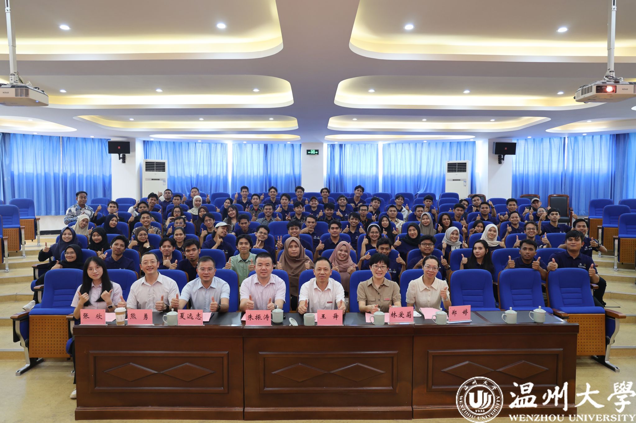 院长夏远志、党总支书记林爱菊为学员代表佩戴温州大学校徽,并用中文亲切问候,寄语“青山与温大紧密相连,携手共进”。随后,国际交流与合作处副处长熊勇、捷报即时比分网