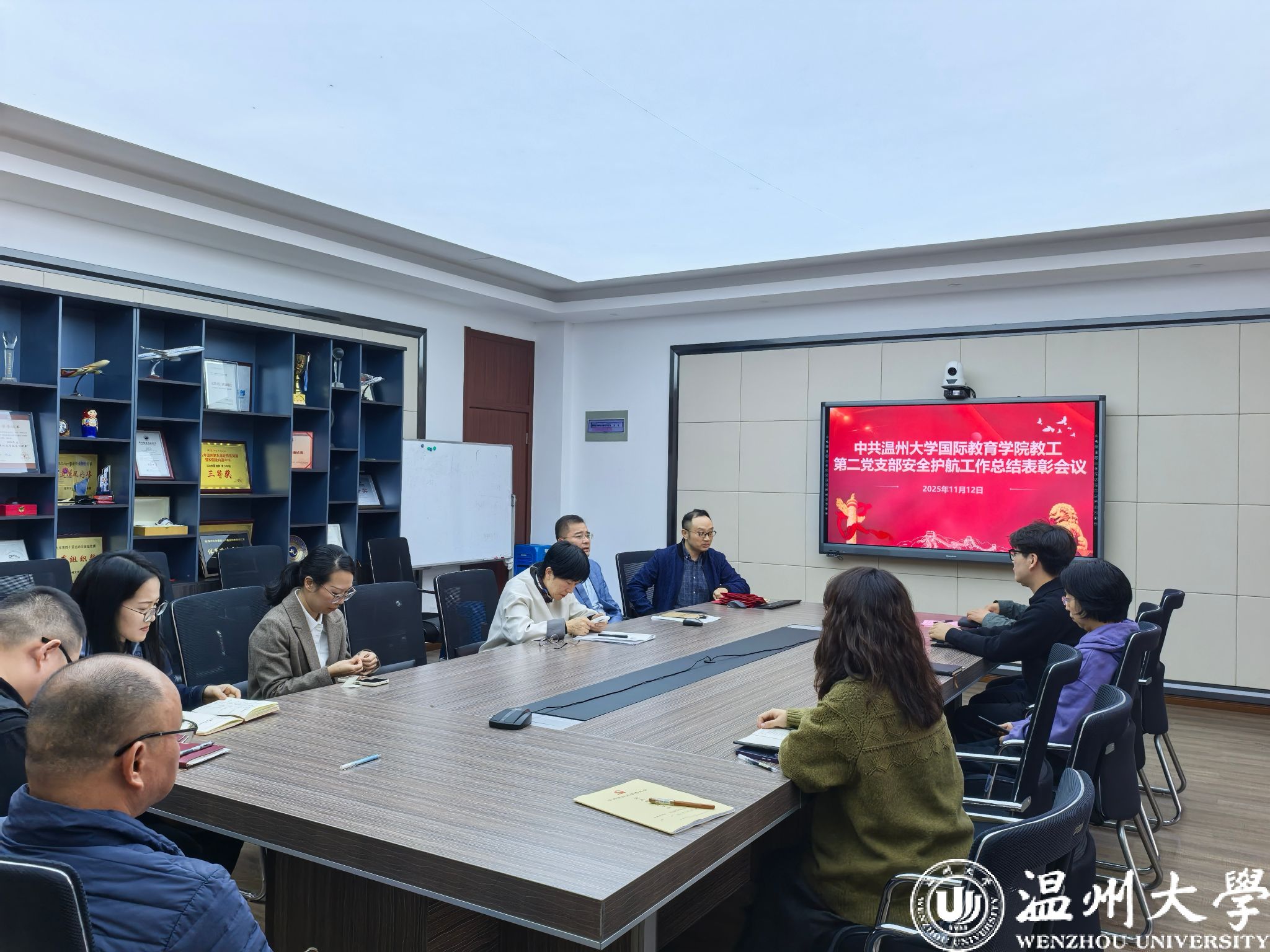 教工第二党支部在学院311会议室召开了一场别开生面的安全护航工作总结表彰会议。会议全面复盘了以“留学生校外住宿大走访”与“国庆假期安全保障”为核心的两项重点工作,并对在其中涌现出的先进个人进行了隆重表彰。