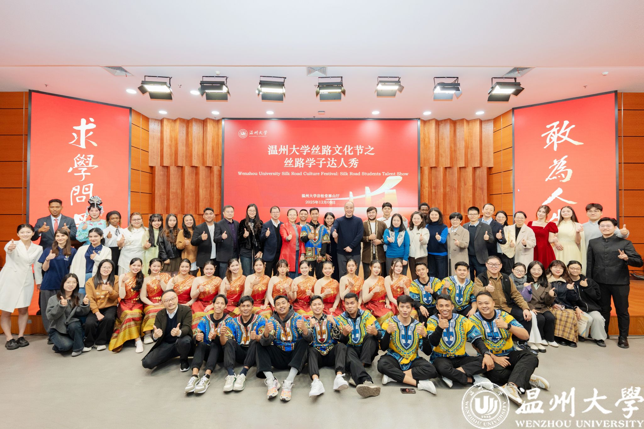 (留学生教育与管理部)主办,是温州大学首届丝路文化节系列活动的重要组成部分。活动以“一带一路”倡议为背景,以学生才艺展示为载体,为各国青年提供了交流互鉴、增进理解的平台,进一步营造了开放包容、文明互鉴的校园国际化氛围,助力培养具有全球视野、跨文化沟通能力的时代新人。