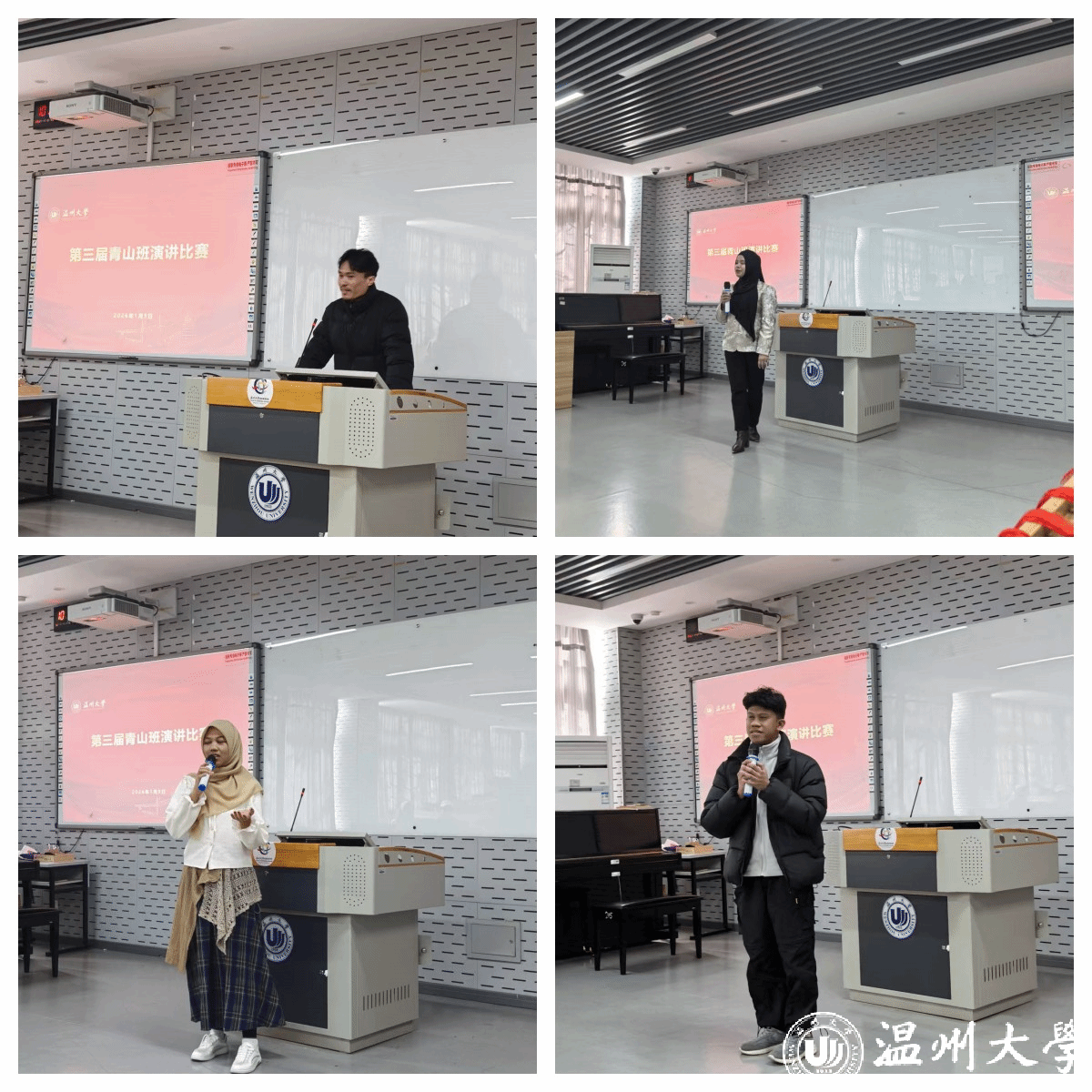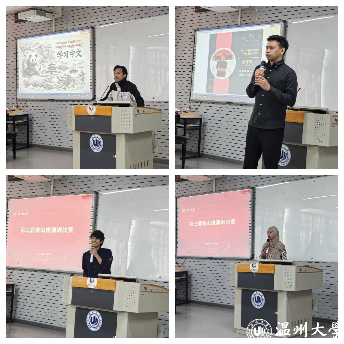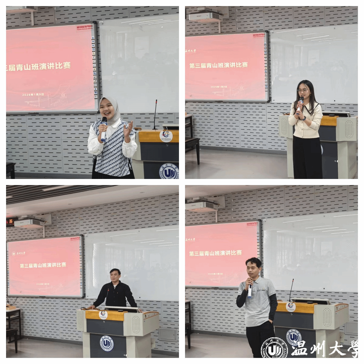 2026年1 月 9 日,第三届 “温大青山班” 留学生演讲比赛在北3-201圆满举行。这场以 “我在温大的留学生活” 为主题的比赛,不仅是温大青山班学员中文口语能力的实力比拼,更是一场跨文化交流的温情盛宴,现场掌声与喝彩声此起彼伏,气氛热烈而真挚。