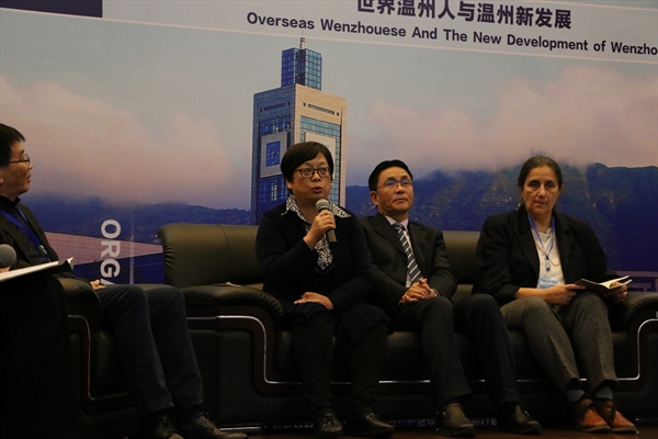 此届世界温州人研究国际学术研讨会首次增设两场学术沙龙,分别讨论华人华侨与公共外交、温商网络与一带一路。第一场沙龙主题为“华人华侨与公共外交”,邀请到了温州市政协港澳台侨与外事委员会主任、温州公共外交协会副会长兼秘书长潘一新、温州市人民政府外事侨务办公室副主任许捷、意大利COSPE协助发展中国家协会前主席,现COSPE协会亚洲部主任Maria Omodeo、意大利佛罗伦萨中文学校校长潘世立、温州大学国际合作学院副院长包含丽、华文教育研究所副所长郑婷。由温大国际合作学院院长、华文教育研究所所长严晓鹏博士主持。
