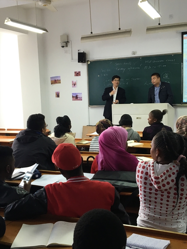 麻福标会长、王南萍副会长还参观了温州大学留学生课堂,麻福标会长表示,自己在非洲的公司有员工将近一百多人,在海外留学生实习基地的基础上,希望未来在留学生就业招聘、中文学习、员工培训等方面同温州大学开展合作。