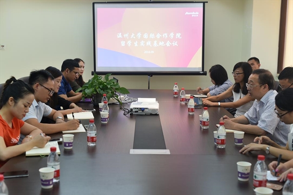 温州大学国际合作学院院长严晓鹏博士,副院长包含丽,温州梦多多文化创意有限公司总经理赵小波,学院汉语推广教研室主任郑婷等出席,双方就共建留学生实践教学基地交换了意见。
