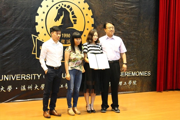又是一年盛夏,又是一年毕业季,凤凰花开满了中华大学校园,处处充满热闹笑声。在这个特殊的毕业季里,温州大学与台湾中华大学首届两岸合作项目13级电子信息专业同学赴台学习满一年,中华大学隆重举行结业典礼。出席典礼的有中华大学校领导、各学院两岸项目分管院长、项目任课教师、各合作院校随队老师以及全体陆生。