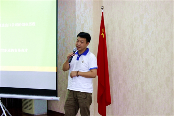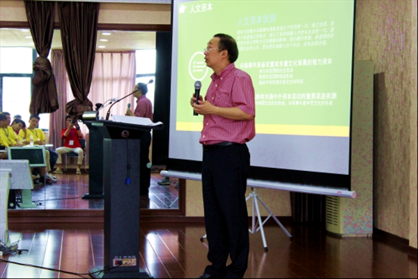 7月11日下午,2016海外华裔青少年“中国寻根之旅”夏令营——优秀华裔青年商务营的营员们开始了他们的第一堂课,围绕培养未来的海外华侨商界领军人物的目标,温州大学国际合作学院院长严晓鹏博士做了一场题为“大众创业,万众创新与华裔青年的发展”的创业教育专题讲座。此次讲座特别邀请了温州五洲进出口公司总经理项炳义先生、温州市轻工艺进出口有限公司董事经理王立丹先生作主题分享。