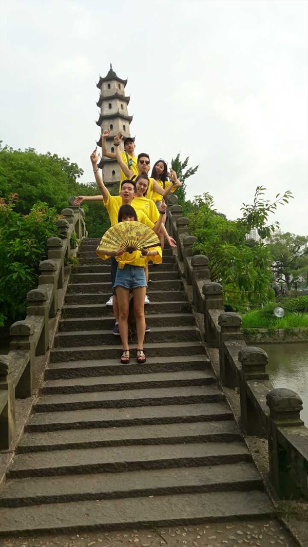 江心屿上景点众多,此行集中在岛上东园,环绕小岛欣赏沿途秀丽的自然风光和历史悠久的人文景观,途径江心寺、谢公亭、革命烈士纪念馆、文天祥祠等著名景点。有的营员已经来过江心屿,热心地给新朋友们当起了导游。华裔青年们或是迎着林间的习习凉风谈天说地,或是在美景下合影留念,一路上都充满了欢声笑语。