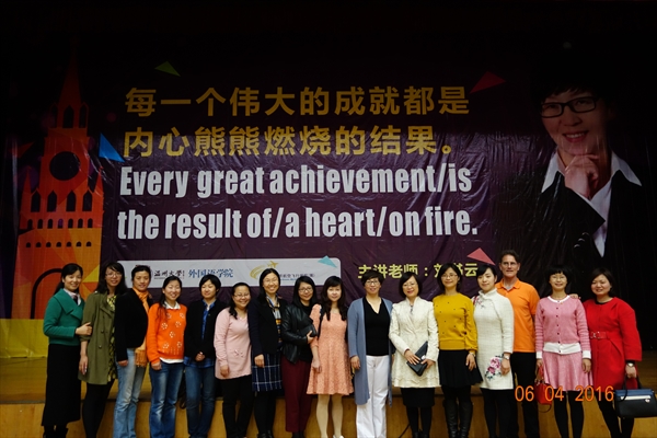 2016年4月6日星期三下午,外国语学院协同温州市通用航空飞行学院(筹)在温州大学大学生活动中心育英大礼堂专为修读《大学外语》课程的大一、大二学生举行了英语学习分享会,旨在推进大学外语教学国际化、加强学生的国际化学习意识、提升学生的自我认知能力。分享会得到了校团委、外事处、保卫处和机电学院等单位的大力支持与配合,外国语学院毛继光院长、陈孟森书记、朱晓申副院长、外教George Main和全体大学英语教师以及15级研究生参加了分享会。外事处叶苗处长,国际合作学院包含丽副院长、英语教练刘书云老师以及外教Ely等也出席了分享会。分享会由外国语学院金瑶同学主持。