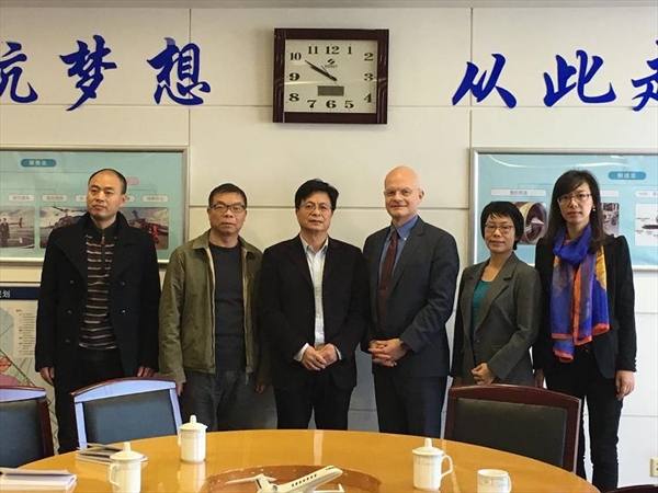 2015年12月7日下午,美国西密歇根大学(Western Michigan University)黑尼克国际教育中心主管国际事务副教务长Wolfgang Schloer博士、亚洲主任曾缨博士一行来访温州市通用航空飞行学院(筹),温州大学校长李校堃、副校长黄少铭先后热情地会见了远道而来的贵客。温州大学外事处处长叶苗,温州大学国际合作学院院长、温州市通用航空飞行学院(筹)院长严晓鹏,和国际合作学院副院长、飞行学院常务副院长包含丽陪同会见。