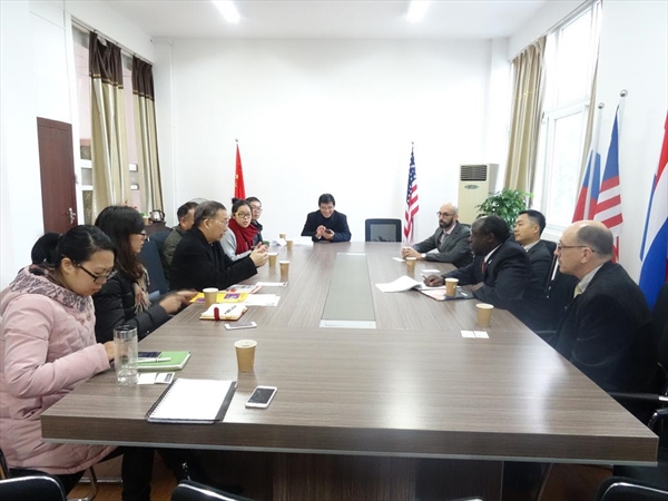 2015年12月17日下午,美国阿巴拉契亚州立大学副校长Jesse Lutabingwa教授,商学院副院长Martin Meznar等一行四人来捷报即时比分网
