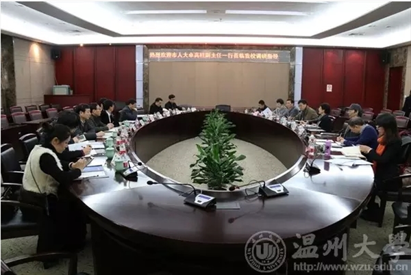 12月25日,市人大副主任卓高柱率市人大教科文卫委员会、财经委员会,市发改委、市科技局、市财政局等部门负责人一行来我校考察调研。校党委林娟娟副书记、副校长蔡曙光,党校办、科技处、计财处等校领导出席。温州大学国际合作学院、温州市通用航空飞学院(筹)院长严晓鹏、副院长包含丽参加本次会议。
