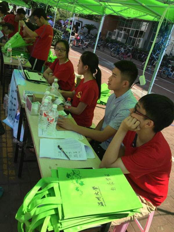 迎着初秋的朝阳,朝气蓬勃的2015级新生,满载着希望和憧憬,相约风景秀丽的大罗山脚,踏入了温州大学的大门。9月8日清晨,国际合作学院超豪学区新生报到点迎新工作开展地如火如荼,喜迎国际合作学院两岸合作项目电子信息工程专业、中丹合作项目市场营销专业和国际贸易专业133名新生。
