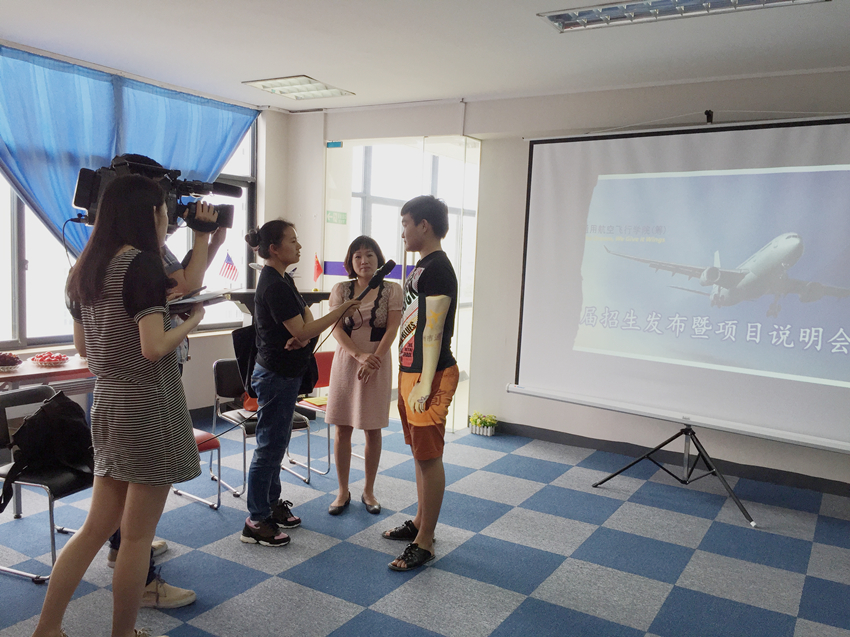图为FAA飞行教官徐龙接收《温州网》记者采访