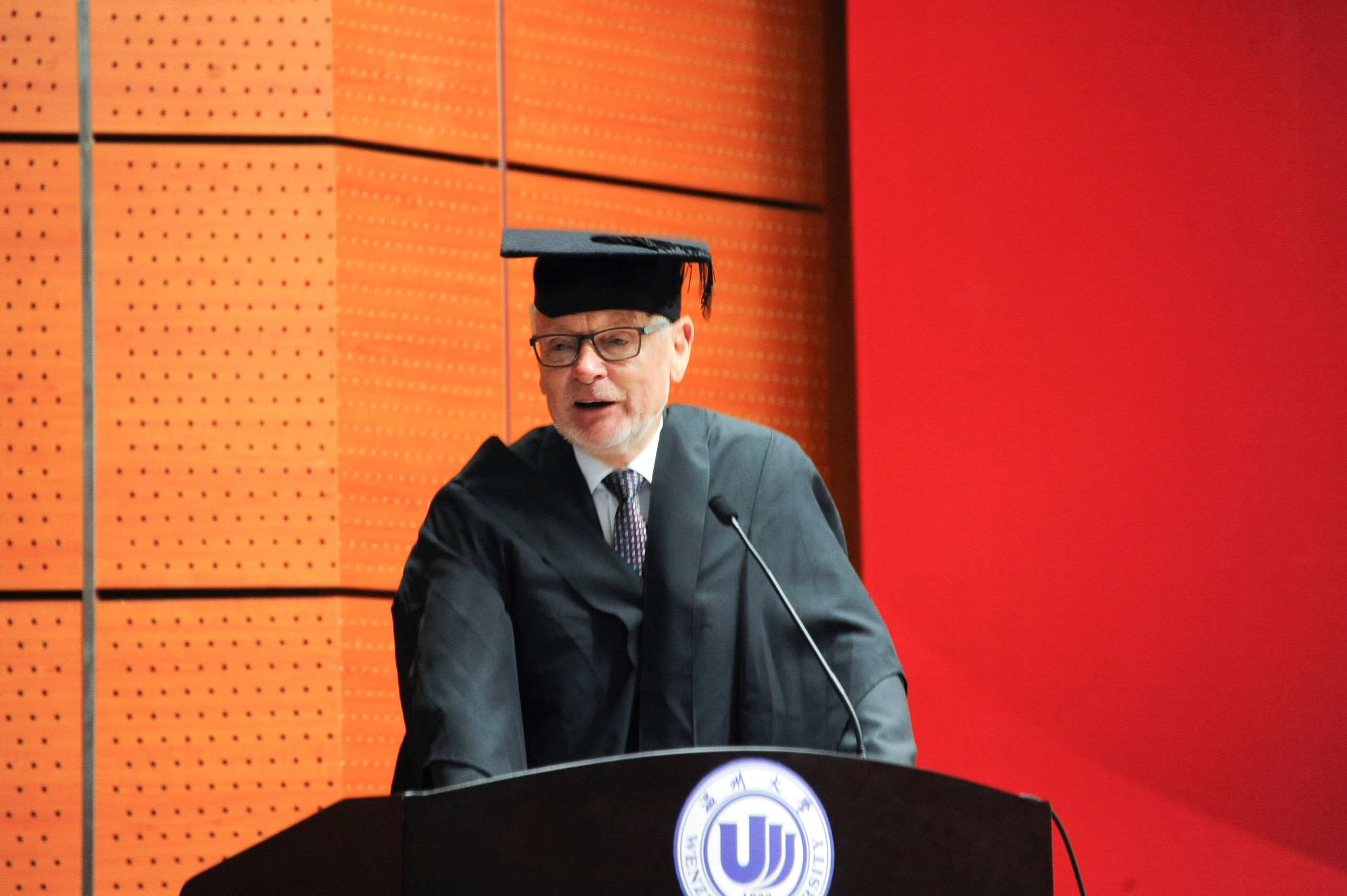 图为丹麦尼尔斯 布鲁克哥本哈根商学院副校长Claus Villumsen为毕业生颁发丹麦学位证书
