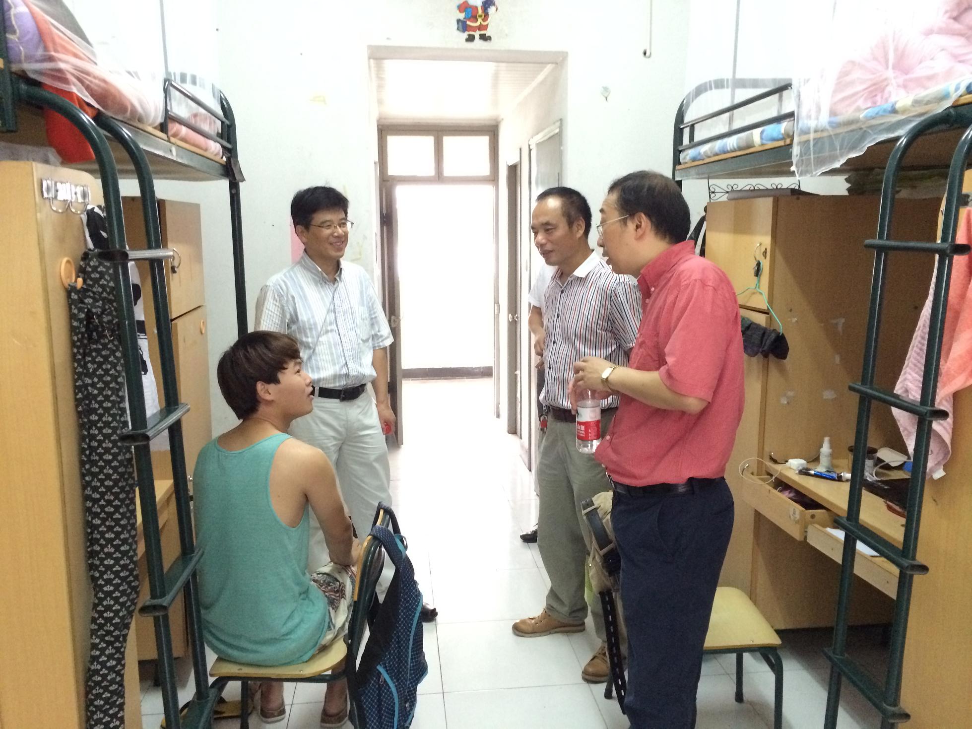图为学院领导走访溯初学区学生宿舍